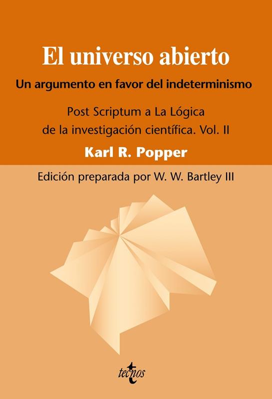 El universo abierto, uno de los tres volúmenes que integran el tan esperado Post Scriptum que Sir Kart Popper escribió en plena madurez intelectual, contiene en núcleo del argumento de esta obra. En el presente tomo, el autor defiende, en un lenguaje sencillo, la libertad, la creatividad y la racionalidad de género humano. El propio Popper describe este libro como < una especie de prolegómeno a la cuestión de la libertad y la creatividad humanas, cuestión a la que abre espacio tanto física como cosmológicamente de una forma que no depende de análisis verbales>.