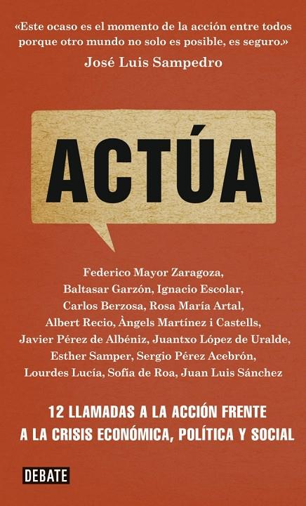 Cuanto más hostil es el entorno y negras las previsiones, más importante es tratar de comprender lo que ocurre y contribuir a la búsqueda de soluciones. Esa es la doble misión que se proponen los autores de Actúa. Después de un convulso 2011, examinan una España y un mundo que se radicalizan, con mayor conciencia ciudadana, pero también con retrocesos históricos en los ámbitos esenciales de nuestra vida.