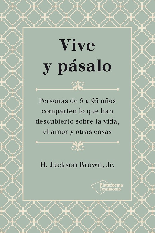 El día que H. Jackson Brown, Jr. cumplió cincuenta y un años decidió apuntar algunas de las cosas más importantes que había aprendido en medio siglo de vida. Disfrutó tanto del ejercicio, que decidió convertirlo en una actividad semanal. Luego un amigo le copió la idea. Al cabo de un tiempo, más conocidos se unieron al proyecto y comenzaron a entrevistar a niños, adolescentes, jóvenes y personas mayores. El resultado es este libro: un conjunto de perlas de sabiduría provenientes de los más diversos medios sociales, que transmiten aliento y determinación. Hay páginas para emocionarse, para reír, para recobrar el ánimo y para darse cuenta de lo que verdaderamente vale la pena. Vive y pásalo, que ha estado más de 28 semanas en la lista de libros más vendidos del New York Times, es en definitiva una invitación a redescubrir nuestras prioridades y a seguir aprendiendo de la vida.