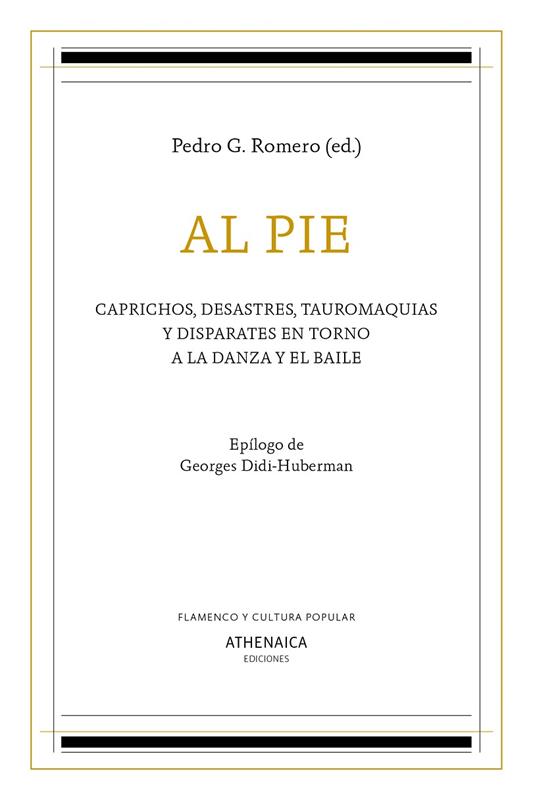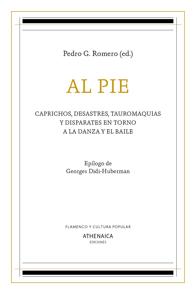 Se reúnen de nuevo, con algunas novedades añadidas, las escrituras libérrimas que hace ya más de veinte años Pedro G. Romero encargó a una serie de artistas y teóricos como textos de apoyo a los Talleres que el propio autor iba a impartir en el Centro Andaluz de Danza. De aquella experiencia surgieron posteriores colaboraciones y el proyecto fue el origen de una revolución en la danza y el baile flamenco —entendidos aquella como expresión reglada y culta y este como la libre expresión popular del cuerpo en movimiento— que hoy contemplamos con regocijo en varias compañías, pero cuyo origen puede situarse en el estreno de Los zapatos rojos de Israel Galván. Desde muy diversos puntos de vista, en una especie de polifonía que engloba diferentes mundos, el baile y la danza son analizados para ir más allá de las líneas estrictas en las que por entonces se movían. El poeta y filólogo Agustín García Calvo y el filósofo Giorgio Agamben presentan textos fundantes de una manera de entender las artes escénicas. Trabajos más intuitivos como los de Isabel Escudero, Esteban Pujals o David Pérez siguen la estela de pensar la danza y, en consecuencia, no explicarla, más bien entenderla como una forma distinta de pensamiento. En ese pensamiento lírico y sensual, pero sobre todo flamenco se mueven también las contribuciones de Ortiz Nuevo. Desde Nueva York, Kirby Gookin y Berta Sichel enfrentan, como dos adelantados a su tiempo, el movimiento del cuerpo con la técnica. Los textos de Estrella de Diego, Patricia Molins y Delfín Colomé conciben la danza como un arte especialmente femenino y feminista, mientras Julián Ruesga Bono lo hace desde sus intereses artísticos y textiles, y Antonio Álamo y Pepa Gamboa desarrollan sendas puestas en escena. A este festín se suman los textos del propio Pedro G. Romero, donde se apuntan las preguntas fundamentales de ese enfrentamiento danza/baile, y un epílogo de Georges Didi-Huberman que vale como broche, culminación y amalgama del resto de los contenidos del libro.