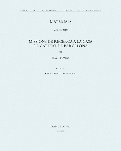 Selecció dels materials recollits per Joan Tomàs arribats a l?Obra del Cançoner Popular de Catalunya. En bona part procedeixen del famós ?Hereu Mill?. Altres són de dones asilades a la Casa de Caritat.