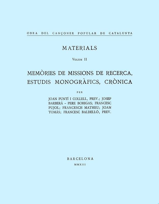 Edició facsímil del segon volum de Materials de l?Obra del Cançoner Popular de Catalunya. Un volum d?un enorme interès i exhaurit des de fa molts anys