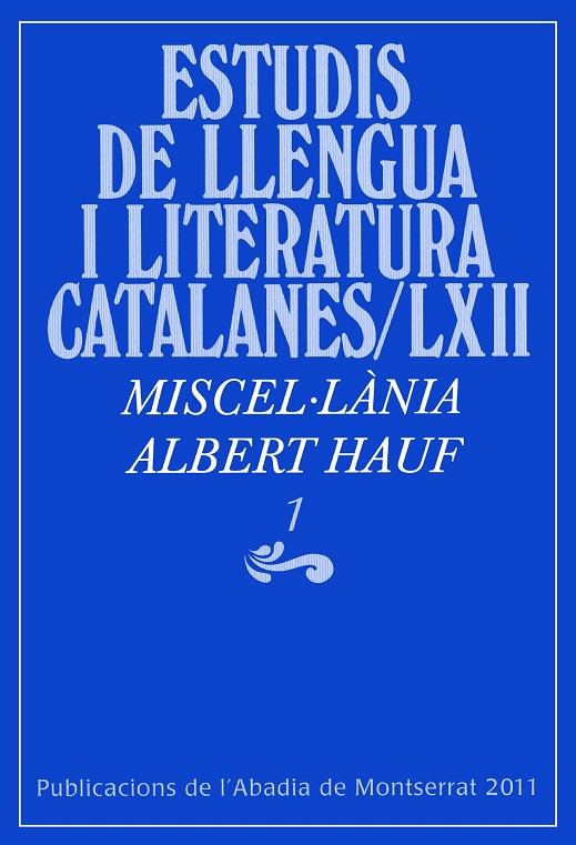 Primer volum del recull de treballs en honor del doctor Albert Hauf, catedràtic de literatura catalana, en reconeixement per la seva llarga trajectòria.