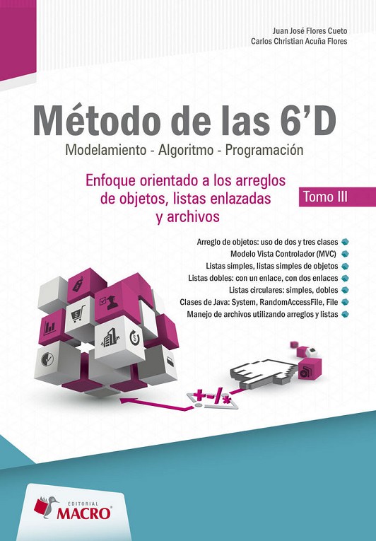 Esta obra desarrolla, de forma detallada y dinámica, conceptos avanzados para el desarrollo de soluciones con el Método de las 6´D. Se presentan un total de tres capítulos con nuevos temas, y en cada uno de ellos se profundiza en el desarrollo de soluciones utilizando las estructuras lógicas (if. if / else, do, while, switch, for) y estructuras de datos (arreglo de objetos, listas enlazadas y archivos de datos). Asimismo, se presenta una gran cantidad de ejercicios resueltos, los cuales serán de gran utilidad para asegurar el aprendizaje progresivo y adecuado de todos los temas tratados. Está dirigido a profesionales y estudiantes de Computación, Informática e Ingeniería