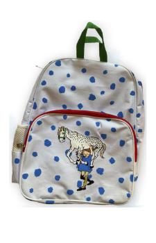 • MOCHILA PIPPI FONDO BLANCA CON TOPOS AZULES