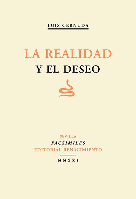 Esta edición de La realidad y el deseo es facsímil de la que salió en 1936 de los talleres de Manuel Altolaguirre para Ediciones del Árbol. Se trata de una reproducción fiel al original, pues el especial cuidado del malagueño por la tipografía la merece.