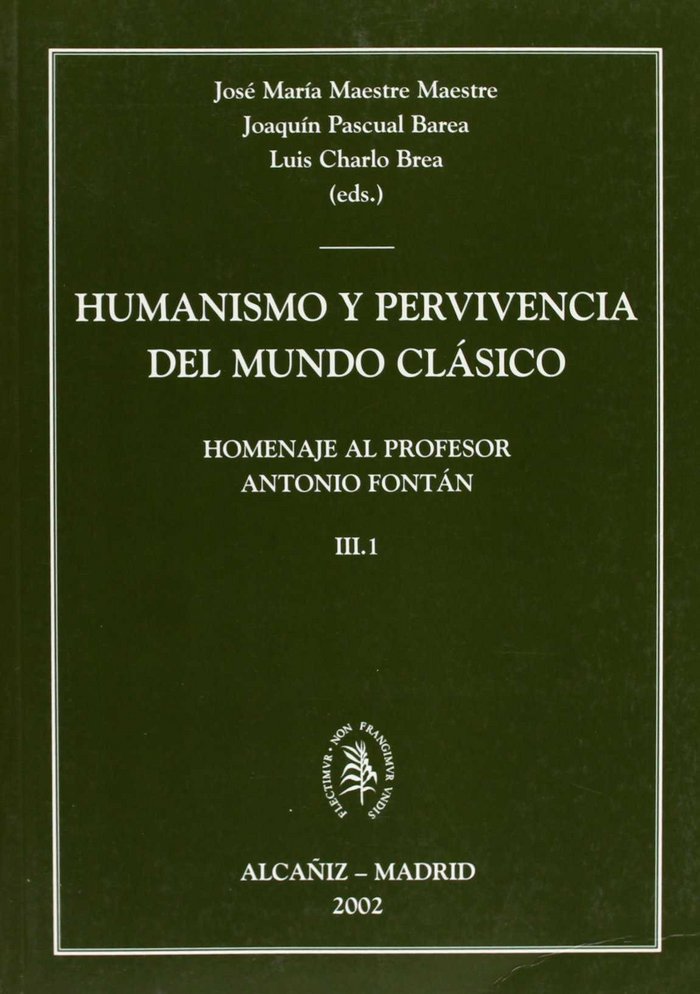 • HUMANISMO Y PERVIVENCIA DEL MUNDO CLÁSICO. HOMENAJE AL PROFESOR ANTONIO FONTÁN. VOL. III.2
