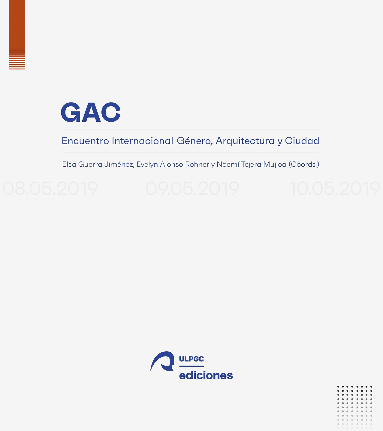 GAC se propone como un marco de reunión, profundización y proposición sobre la arquitectura desde la perspectiva de género en sus diferentes escalas, esto es, la planificación, el diseño urbano y la edificación. Se trata de una iniciativa de Marca Púrpura, asociación de mujeres arquitectas canarias, cuyo objetivo general es el de aprender y profundizar colectivamente en la cuestión del género y en particular en su relación con los campos disciplinares que nos son propios, la arquitectura y el urbanismo. Se plantea a modo de programa a desarrollar en sucesivos formatos. Se inició con el Encuentro Internacional GAC: Género, Arquitectura y Ciudad, que tuvo lugar en el mes de mayo de 2019 en Las Palmas de Gran Canaria, cuyo contenido general es la base de la presente publicación. Y se pretende continuar próximamente, con diversas actividades, entre ellas, la convocatoria de un Seminario-Taller, de formato más práctico. El Encuentro Internacional GAC: Género, Arquitectura y Ciudad ofreció un espacio de exposición y debate disciplinar que permitió avanzar en el acercamiento a la integración de la condición de género o perspectiva de género tanto en la articulación teórica y conceptual, como en el ejercicio práctico de la arquitectura y el urbanismo. Contó con relevantes arquitectas de reconocimiento internacional como ponentes invitadas, así como con convocatoria de comunicaciones para personal investigador, además de la exposición de experiencias en marcha desde diversas asociaciones o colectivos, a lo que se sumó la participación amplia y plural de profesionales y docentes, así como de la ciudadanía interesada en la construcción de la ciudad. El Encuentro Internacional se organizó en tres bloques temáticos, sobre: urbanismo feminista, espacio libre con perspectiva de género y espacio construido con perspectiva de género; estructura que se mantiene en la presente publicación.