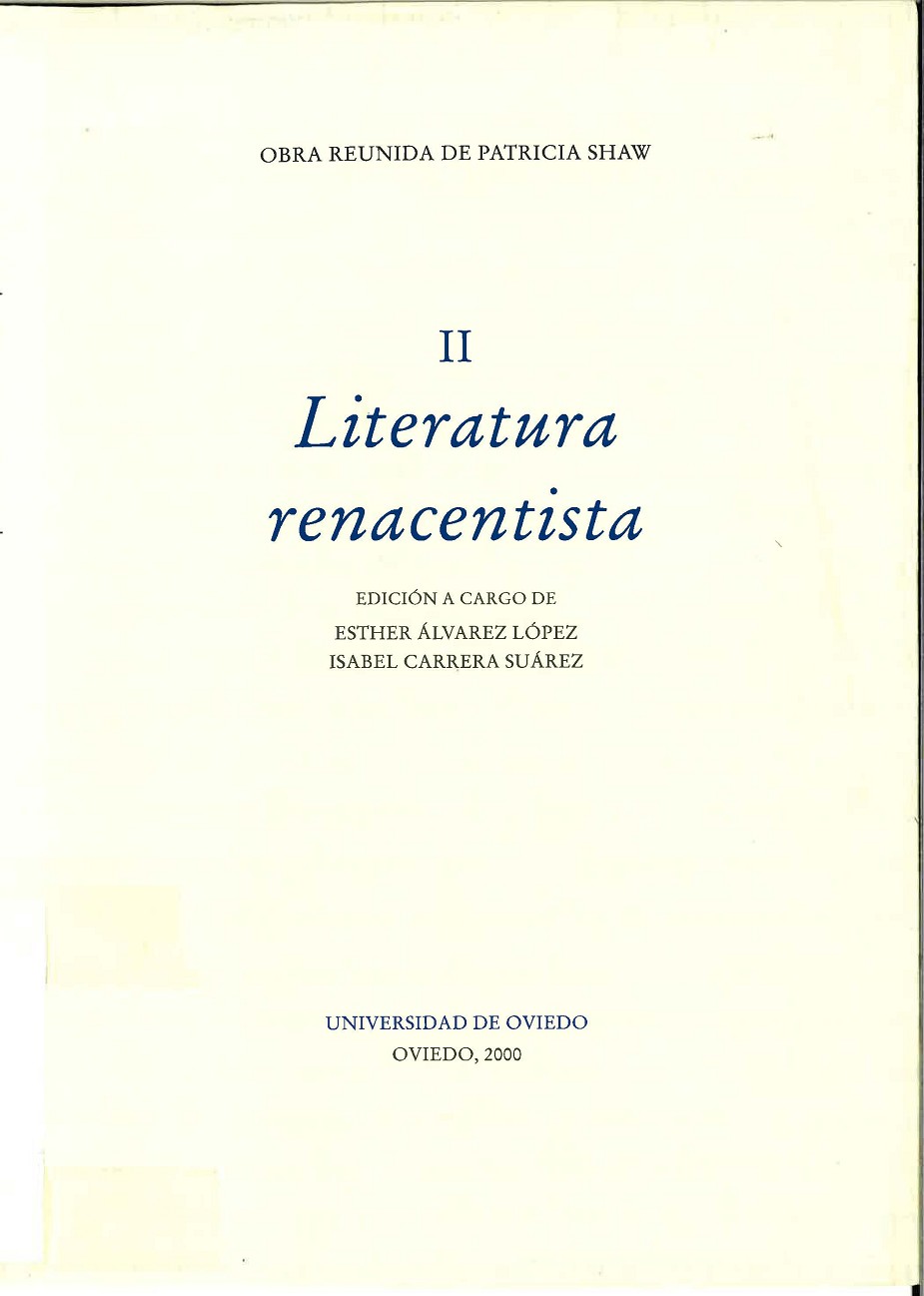 Segundo volumen de la obra reunida de Patricia Shaw dedicado a la literatura renacentista