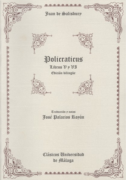 El Prof. José Palacios ofrece a los medievalistas la versión al castellano, desde el texto latino, de dos nuevos libros (V y VI) del Policraticus de Juan de Salisbury, una de las obras cumbres de la Edad Media europea, de las que ?han cambiado el mundo? (Dave Koper). Son dos nuevos libros de los ocho que la componen y que siguen a los cuatro ya publicados por José Palacios, profesor de la Universidad de Málaga.