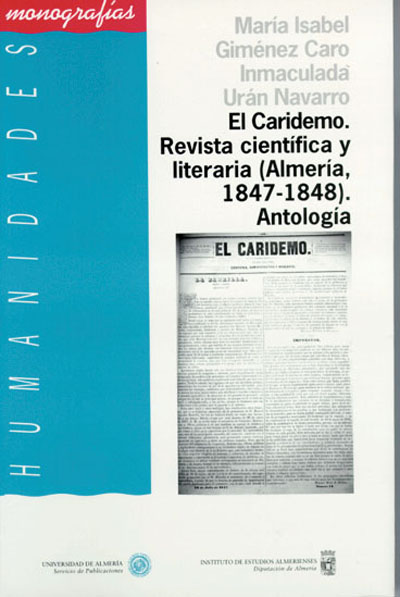 La revista El Caridemo, editada en 1847-48, se inscribe en un amplio movimiento que permite la aparición de publicaciones como El Semanario Pintoresco Español, la crónica o el Siglo Pintoresco. El Caridemo nos ofrece una información precisa sobre los criterios que orientan la producción e interpretación en provincias de la novela o la poesía a mediados del XIX. Las páginas de esta antología proporcionan al lector un comentario detallado sobre los problemas económicos de Almería, y recogen las quejas permanentes por la falta de unas vías adecuadas de comunicación o el debate sobre las reformas urbanísticas de la ciudad , junto a la animada descripción del bullicio en los días de feria y la reseña de los principales actos culturales organizados por instituciones como El Liceo. Isabel Giménez Caro, profesora de la Universidad de Almería, e Inmaculada Urán Navarro han selccionado las páginas que mejor pueden orientar al lector sobre los contenidos de la revista. Y analizan en la introducción los comentarios del El Caridemo situándolos en las coordenadas de la época y atendiendo a los resortes que nos muestran las intrigas, las aspiraciones y las formas de vida provincianas.