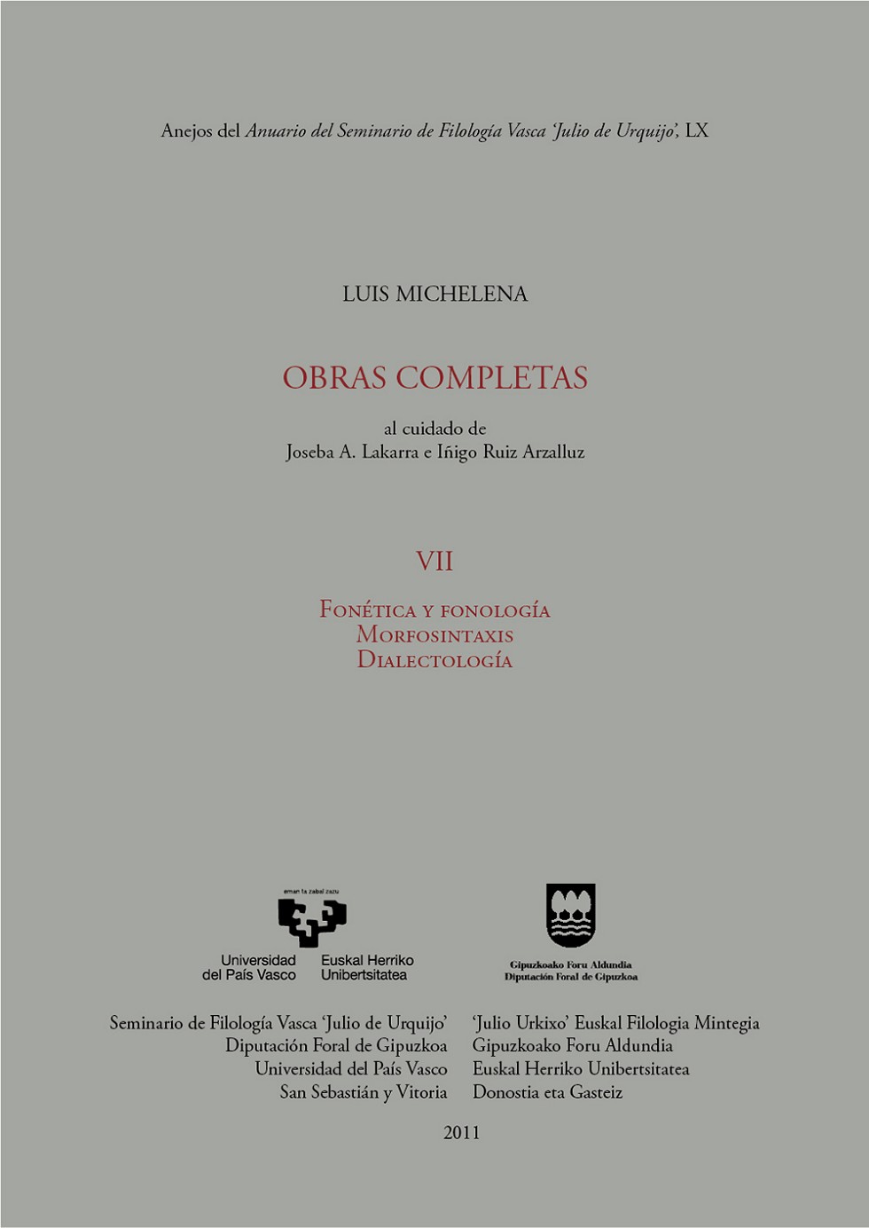 Col·lecció :ANEJOS DEL ANUARIO DEL SEMINARIO DE FILOLOGÍA VASCA JULIO DE URQUIJO. LUIS MICHELENA. OBRAS COMPLETA