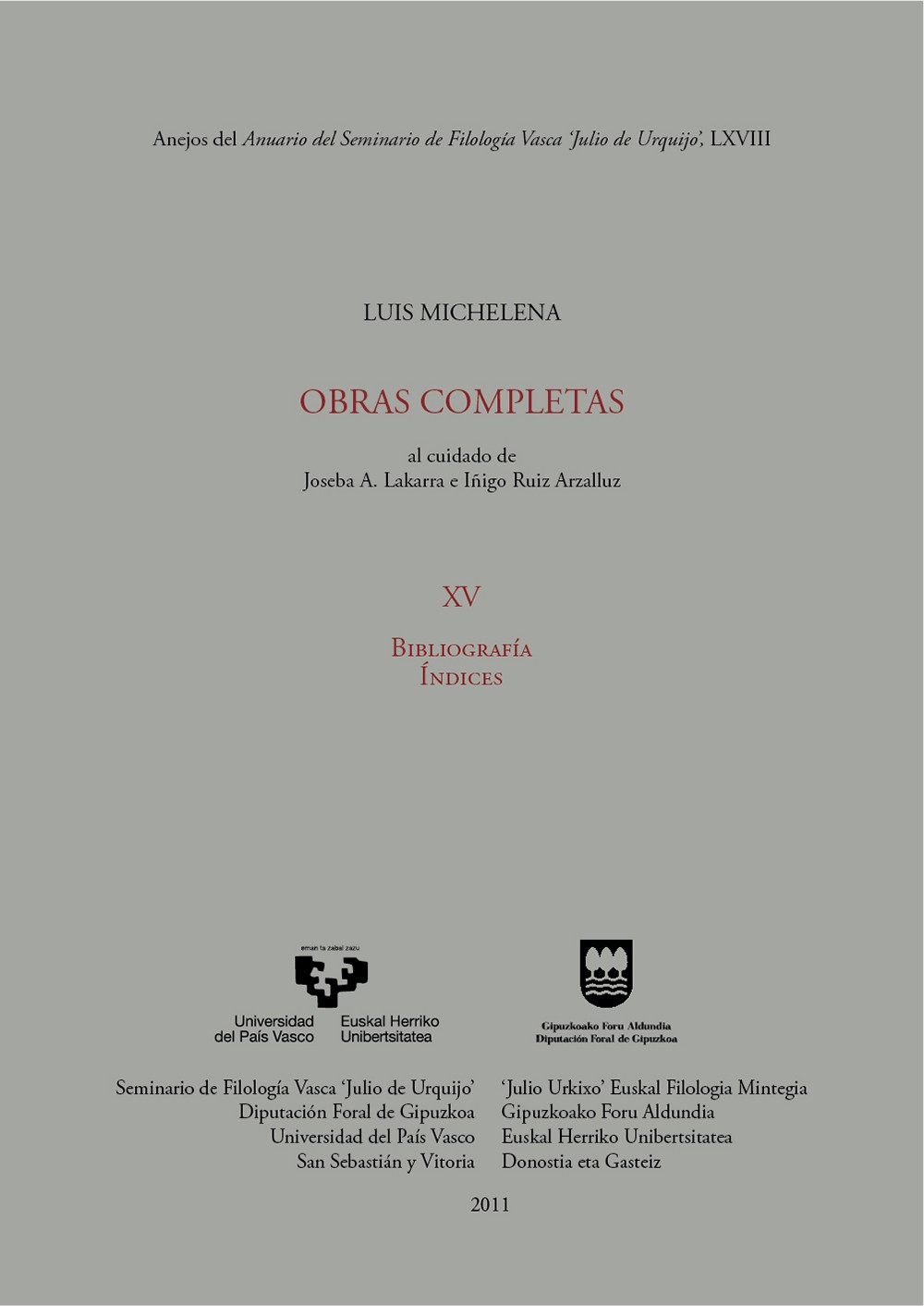Col·lecció :ANEJOS DEL ANUARIO DEL SEMINARIO DE FILOLOGÍA VASCA JULIO DE URQUIJO. LUIS MICHELENA. OBRAS COMPLETA
