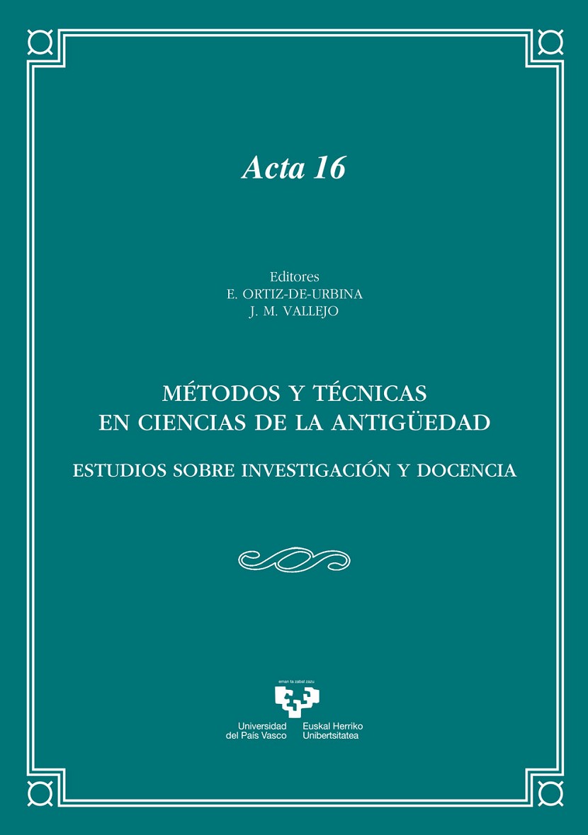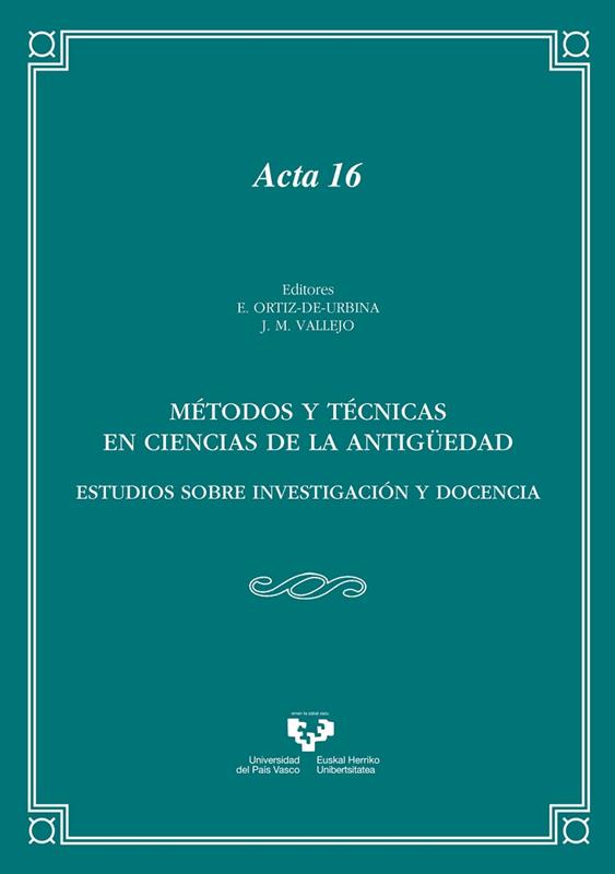 El presente libro tiene su origen en la actividad científica que organizó el Instituto de Ciencias de la Antigüedad (ICA/AZI) de la Universidad del País Vasco en 2015 en la Facultad de Letras de Vitoria-Gasteiz. Esta aportación científica se centró, en esta segunda edición de cursos organizados por el ICA/AZI, en los métodos y técnicas de investigación correspondientes a disciplinas específicas y autónomas, conocidas como Ciencias de la Antigüedad, que conciernen a la propia naturaleza de las cinco áreas de investigación que integran el Instituto: Prehistoria, Antigüedades Indoeuropeas y Orientales, Filología Griega y Latina, Antigüedad Clásica y Antigüedad Peninsular.