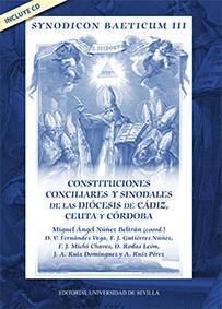 Tercer volumen del Synodicon Baeticum. Los dos anteriores fueron publicados por la Editorial Universidad de Sevilla. Se estudian catorce libros de constituciones sinódico-conciliares de las diócesis de Cádiz, Ceuta y Córdoba, que abarcan desde el siglo IX hasta el siglo XX. La compilación de estas constituciones sinódico-conciliares se ha realizado con el objetivo de que ayude a un mejor conocimiento de la historia de la Iglesia de las diócesis de correspondientes, así como de la misma historia de estas provincias andaluzas, debido a la influencia de la Iglesia y su doctrina en la mentalidad y conducta del pueblo. Se pretende, así mismo, que sea una herramienta útil para investigadores de la historia e, incluso, para estudiosos del derecho, pues los concilios y sínodos muestran también un marco jurídico en el que se sitúa un amplio sector de la sociedad. En el estudio de estos documentos se aprecia el interés de la Iglesia por hacer frente a las transformaciones que experimenta la sociedad en este tiempo. Los anteriores al siglo XIX exponen una amplia legislación en aspectos generales de la vida de los cristianos, que a veces se convierte en una auténtica legislación civil. A partir de este siglo, las transformaciones políticas, sociales y económicas obligan a la Iglesia a su adaptación a los nuevos tiempos. El presente libro, como los volúmenes anteriores, se edita en un doble formato. En sistema digital, un CD en el que se incluye el texto íntegro de las constituciones de los concilios y sínodos. En el sistema tradicional, en papel, estudios introductorios histórico-temáticos que favorecen la comprensión de las celebraciones de los sínodos y las determinaciones que se aprueban. Se concluye con un índice temático práctico para la investigación de estos documentos eclesiales