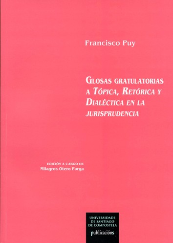 Tras el homenaje ofrecido por un numeroso grupo de colegas y amigos a Francisco Puy en forma del libro colectivo Tópica, Retórica y Dialéctica en la jurisprudencia, que vio la luz en 2012, el homenajeado ha querido mostrar su gratitud comentado, glosando y contrastando las ideas de sus amigos con las suyas propias. Para ello, presenta sus reflexiones en cartas con las que responde, una por una, a todas las aportaciones del libro, siguiendo el modelo de diálogo filosófico epistolar, empleado ya por los clásicos. Emulando a Platón, Séneca, Spinoza, Locke, Goethe o Unamuno, estas páginas conforman un epistolario. Pero este libro es también un glosario gratulatorio. Es un glosario porque todos los escritos contenidos en el volumen de homenaje reciben su glosa en este, y es gratulatorio porque el agradecimiento es uno de los elementos genéticos y se permea en sus palabras.