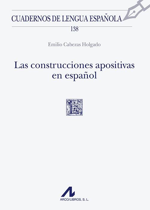 Esta obra describe la construcción nominal conocida a partir de la Tradición Gramatical como aposición, tomando como base las particularidades léxicas de los elementos que conforman dicha construcción, así como las relaciones sintácticas que determinan las combinaciones nominales propiamente apositivas. Por ello es por lo que se revisa la clasificación tradicional para este tipo de estructuras y se elabora una clasificación exhaustiva de naturaleza léxico-sintáctica, discriminando la función de aposición que presenta carácter nominativo, genitivo y/o locativo, y especificando las categorías léxicas que la definen, así como su analogía con determinadas variedades oracionales. Así, este cuaderno va dirigido a profesores universitarios de Lengua Española y Lingüística Aplicada, profesores de enseñanza secundaria o enseñanza del español y estudiantes de cualquier titulación que incluya en sus programas materias de Lengua, Gramática o Lingüística.