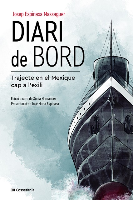 EDICIÓ A CURA DE SÒNIA HERNÁNDEZ I PRESENTACIÓ DE JOSÉ MARÍA ESPINASA NOVETAT DE GENER AQUEST VOLUM RECULL LES CARTES QUE JOSEP ESPINASA ENVIAVA A LA SEVA DONA, DOLORS CLOSAS, MENTRE ESPERAVA, A BORDEUS PODER EMBARCAR AL _MEXIQUE_, UN DELS VAIXELLS QUE VA TRASLLADAR ALS EXILIATS REPUBLICANS CAP A MÈXIC, AIXÍ COM LES SEVES ANOTACIONS DURANT EL TRAJECTE I ELS PRIMERS MESOS DESPRÉS DE L'ARRIBADA AL SEU DESTÍ. Recordar que som el producte de la nostra història pot semblar una obvietat. Potser no ho és tant repassar la manera en què allò que van viure els nostres progenitors i els seus encara afecta a la nostra percepció de la realitat i la nostra manera de desenvolupar-nos-hi. El _Diari de bord_, de Josep Espinasa Massaguer, ofereix les reflexions i emocions que van ocupar la ment de qui fou alcalde de Montcada i Reixac durant uns temps ben convulsos. Representació escrita de la seva experiència d'un trajecte tan transcendent com va ser el camí cap a l'exili a Mèxic, a bord del mític vaixell _Mexique_, i que mai no va tenir retorn. Gràcies a la generositat de la família, que l'ha recuperat, el document situa a qui ho llegeix actualment en un moment històric que es tradueix en els gestos quotidians que s'alteren radicalment per configurar una nova vida, l'objectiu principal de la qual era evitar l'amenaça de la repressió i, fins i tot, la mort. El diari de Josep Espinasa és també el testimoni de l'inici d'una nova vida, literalment, el procés pel qual una persona arriba a un nou país i ha de tornar a construir els seus entorns i les circumstàncies que permetin tornar a viure en llibertat. * Aquests escrits, amb un cert impuls intuïtiu, buscaven exorcitzar la tristor i conservar per al futur la fidelitat del dolor viscut. * La part central del llibre està dividida en tres parts: "Correspondència des de Bordeus", "Diari de bord" i "Correspondència des de Ciutat de Mèxic".