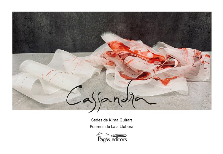 Cassandra ha estat assassinada. L’assassinat succeeix fora de l’escena, tant de l’antiga tragèdia d’Èsquil (Agamèmnon de l’Orestia) com del relat modern, el monòleg de Cassandra davant de les portes del palau de Micenes, de Christa Wolf, l’obra que ha inspirat Kima Guitart. A l’obra de Kima Guitart són les sedes de sang les que ens relaten tota la història, amb els seus plecs, que són el gest i l’expressió de les robes (Gilles Deleuze), les intensitats i gradacions del vermell en el seu estat de sedes que desborden el recipient com la sang que es vessa sense parar de la copa, sedes caigudes, cadàvers. La construcció de Llobera passa per l’estrofa breu, epigramàtica, i conforma un perfecte diàleg amb les sedes de Kima Guitart. El blanc, la delicadesa, la sang. Format en major part per quartetes i tercets —també hi trobem una tanka—, es val en tot moment de la simplicitat d’allò que s’hi exposa, tant a nivell formal com de llaços semàntics. I això fa que la connexió lectora sigui pràcticament immediata, amb ferida i sotrac inclosos.