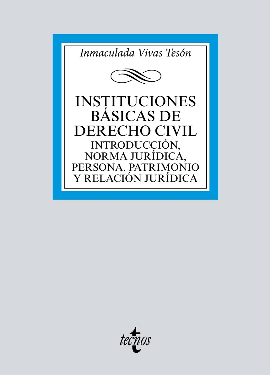 Tras algo más de un cuarto de siglo impartiendo docencia en las cinco veces centenarias aulas hispalenses, Inmaculada Vivas Tesón ha elaborado unos materiales didácticos con el único propósito de que sean de utilidad para el estudiante que se inicia en la formación jurídica y, más concretamente, en el estudio del Derecho civil, la columna vertebral del ordenamiento jurídico. Se trata de un manual en el que se contienen, de manera sintética y asequible (si bien ello deberá juzgarlo el lector), instituciones jurídico-privadas medulares, como son las relativas a las fuentes del Derecho, la eficacia, aplicación e interpretación de las normas jurídicas, la persona, el patrimonio y la relación jurídica, con el objetivo de asentar los cimientos que permitan sumergirnos en las profundidades de las mismas durante las sesiones regladas de la disciplina a través de diversos instrumentos y recursos pedagógicos y, por supuesto, del aprendizaje autónomo por parte del discente. Tomando como base la propia experiencia de la autora, esta obra responde al contexto y planteamientos docentes actuales.