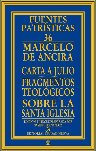 El presente volumen reúne todas las obras de Marcelo de Ancira que actualmente son reconocidas como auténticas por una buena parte de los estudiosos. La carta de Marcelo al papa Julio, sus fragmentos teológicos transmitidos por su gran adversario, Eusebio de Cesarea, y un largo fragmento de su tratado Sobre la santa Iglesia son editados en griego, traducidos al castellano y comentados por medio de abundantes notas. La introducción, además de las cuestiones técnicas, contiene una visión general de la teología de Marcelo que puede resultar interesante no solo a los patrólogos, sino también a quienes cultivan la teología, en especial la escatología, la cristología y la teología trinitaria.