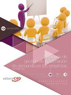 Se entiende por Especialidad formativa la agrupación de contenidos, competencias profesionales y especificaciones técnicas que responde a un conjunto de actividades de trabajo enmarcadas en una fase del proceso de producción y con funciones afines. Las especialidades formativas se encuadran dentro de las familias profesionales establecidas en el Catálogo Nacional de Calificaciones Profesionales, y sirven como referente para la programación de acciones en el marco del subsistema de formación profesional para el empleo. El presente volumen incluye el desarrollo de contenido basado en el programa de la especialidad SSCE072PO, ?Nociones de gestión de la formación de demanda en las empresas?, el cual puede ser de aplicación en la programación de acciones formativas relacionadas. Su estructura es la siguiente: - Ficha técnica - Objetivos generales y específicos - Desarrollo teórico de programa - Resumen por tema - Glosario de términos - Bibliografía - Ejercicios de autoevaluación por tema: test y actividades