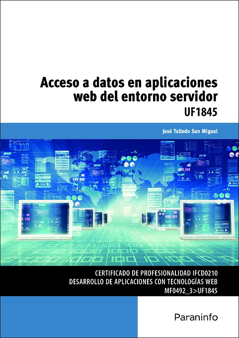 El desarrollo de componentes software en el entorno servidor permite cumplir los objetivos de diseño web según las especificaciones dadas.;En este libro aprenderemos a desarrollar componentes que permitan el acceso y la manipulación de las informaciones soportadas en bases de datos y otras estructuras, y a integrar sentencias SQL para acceder y manipular la información ubicada en bases de datos. Además, en un supuesto práctico, veremos cómo identificar los elementos contenidos en ellas, la manera de utilizar los objetos, conectores y middleware necesarios en la construcción del componente, y por último, realizaremos operaciones de definición y manipulación de la información mediante el lenguaje SQL. Cada capítulo se complementa con actividades prácticas y de autoevaluación, cuyas soluciones están disponibles en www.paraninfo.es.;Los contenidos se corresponden fielmente con los establecidos para la UF 1845 Acceso a datos en aplicaciones web del entorno servidor, incardinada en el MF 0492_3 Programación web en el entorno servidor, perteneciente al certificado de profesionalidad IFCD0210 Desarrollo de aplicaciones con tecnologías web, regulado por el RD 1531/2011, de 31 de octubre, y modificado por el RD 628/2013, de 2 de agosto.;José Talledo San Miguel es profesor de ciclos formativos.