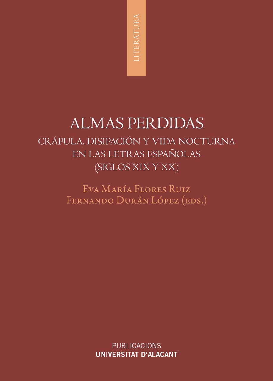 Almas perdidas propone un novedoso diálogo crítico con representaciones literarias españolas, siglos XIX y XX, de diversas formas de adicción y mala vida , agrupadas en varias categorías: ludopatía, consumo prostitucional, alcoholismo, drogadicción y juerga noctámbula. Sus dieciséis capítulos, a través de una panorámica gama de autores (Larra, Bécquer, Olmet, Retana, Coronado, Galdós...) y de géneros literarios tan diversos como el teatro ínfimo, la novela, el costumbrismo o la poesía simbolista y modernista, vienen a mostrar cómo, desde el Romanticismo, excesos, vicios y adicciones dejan de ser meros accidentes de la condición humana y se convierten en callejones cuyas oscuridades iluminan las lacras sociales, en agujeros negros de la moral, la familia, ...