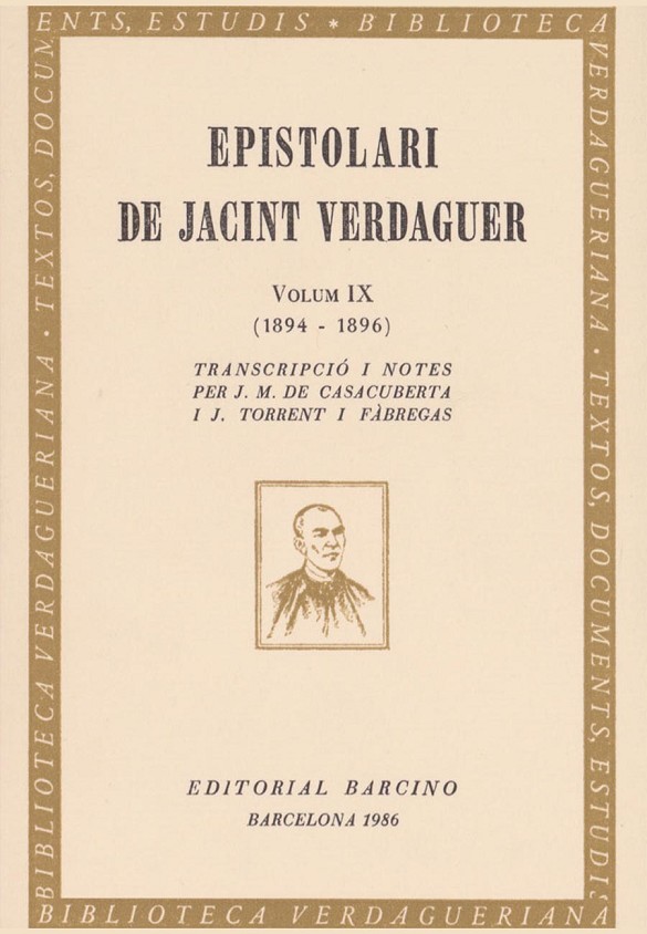 El volum comprèn un recull de 167 cartes de Jacint Verdaguer, de l’agost de 1894 a maig de 1896.
