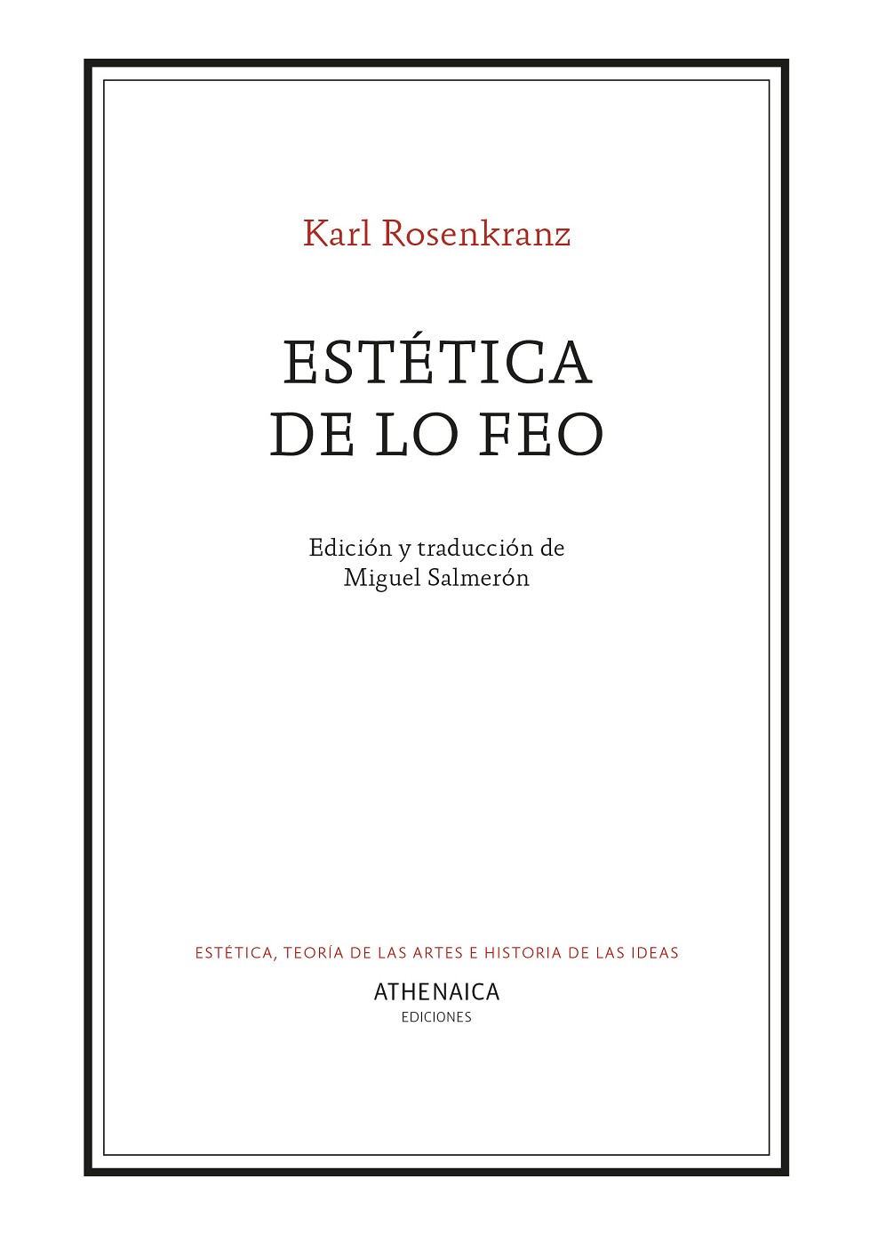 Se trata del primer ensayo de la historia destinado específicamente a la temática lo feo. La motivación del autor fue la persistente presencia de lo feo en su época, que él entendía como síndrome de esta. Un síndrome caracterizado por la inmoralidad creciente entre las personas, el incremento de tendencias naturalistas en el arte y la imitación inmediata y carente de mérito de la realidad mediante nuevos procedimientos de copia como el daguerrotipo o de las figuras de cera. Esos tres rasgos: la frivolidad (negación de lo bueno), la causalidad (negación de lo verdadero) y la particularidad (negación de lo universal) son objeto de ataque del autor. De las manifestaciones artísticas más propias de su época Rosenkranz sólo salva a la caricatura: capaz de sintetizar lo genérico y lo individual. El texto original en el que se ha basado esta edición es el impreso en 1853 en Königsberg por la editorial Bornträger. Aparte de las notas al texto que incluyó el propio Rosenkr