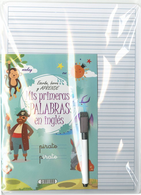 Escribe tus primeras palabras en inglés y practica cuantas veces quieras escribiendo en la pizarra que acompaña al libro. Puedes borrar y empezar de nuevo, tanto en el libro como en la pizarra... ¡así seguro que no te olvidan!