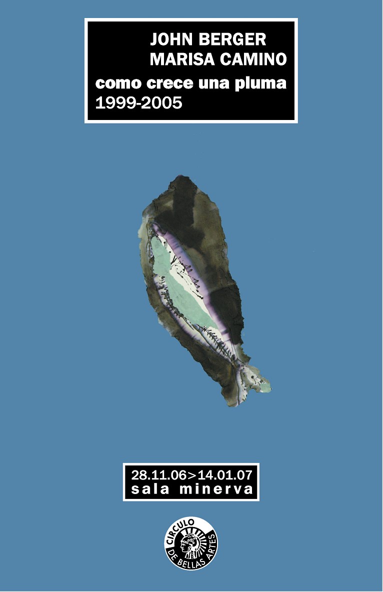 Como crece una pluma es el resultado de un intercambio creativo entre Marisa Camino y John Berger que se remonta a 1992, pero que no comenzó a plasmarse en dibujos hasta siete años más tarde. Estas obras viajaron en numerosas ocasiones en coche, en avión, por correo... entre ambos artistas para completarse con aportaciones sucesivas de uno u otro. De tamaños moderados, con un uso puntual del color y en muchos casos cercanos al collage, son dibujos de factura íntima que registran un encuentro con la naturaleza y su rastro, pero que también conversan con silenciosas inspiraciones humanas, como el claustro de una abadía o las pinturas del cro-Magnon. Como explica el propio Berger en una conversación con otro pintor, su hijo Yves: «Creo que estábamos buscando un lenguaje común, y finalmente encontramos un diálogo con el dibujo. Nuestros dibujos me recuerdan la conexión que hay entre papel y tela. Marisa se identifica mucho con los pájaros. Menciono esto porque los pájar