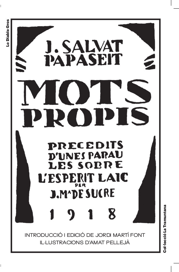 Amb el títol de Mots-propis, Salvat-Papasseit va publicar a Un Enemic del Poble un total de 118 textos en els tres anys que va sortir la revista, de 1917 a 1919. Però el llibre que els havia de recollir tots, malgrat comptar amb un pròleg de Josep M. De Sucre i una portada obra de Torres-García, no va arribar a sortir com a conseqüència de l extrema pobresa en què vivia Salvat. Ell mateix va deixar escrit que va fer-ne dues correccions però que no va aconseguir reunir les diners per publicar-lo. L any següent, sortiria el seu primer llibre de poemes i aquests textos aforístics de pensament no van ser publicats, tot i que no tots, fins que l any 1975, J. M. Sobré en va recollir la majoria en un volum. L any 2006, amb la publicació de l obra completa de Salvat per part de Carme Arenas es van reunir tots i fa deu anys l editorial Roure en va fer una primera edició completa tot i que difícil de trobar i que no incloïa cap explicació sobre què era aquell llibre. Ara, us presentem Mots-propis tal com el va pensar Salvat, amb un pròleg explicatiu de Jordi Martí Font i il lustracions per a cada text d Amat Pellejà.