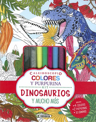 Disfruta de una experiencia única con las láminas de este kit de la colección Caleidoscopio. Diseñadas para llenarlas de brillos y matices cuando son coloreadas, encontrarás un montón de dinosaurios y otros animales prehistóricos. ¡Las páginas son extraíbles! Además, el kit incluye cuatro rotuladores de colores y dos botes con gel de purpurina, ¡para que brillen tus dinosaurios!