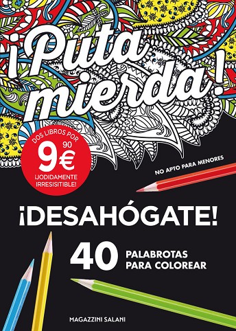Lo habitual es que para desahogarte o digas una palabrota o colorees un dibujo. Hasta ahora. Ya puedes hacer las dos cosas a la vez.En este pack de palabrotas para colorear encontrarás dos libros y cerca de 100 palabras que podrás colorear sin tener que estar gritando insultos con todas tus fuerzas....
