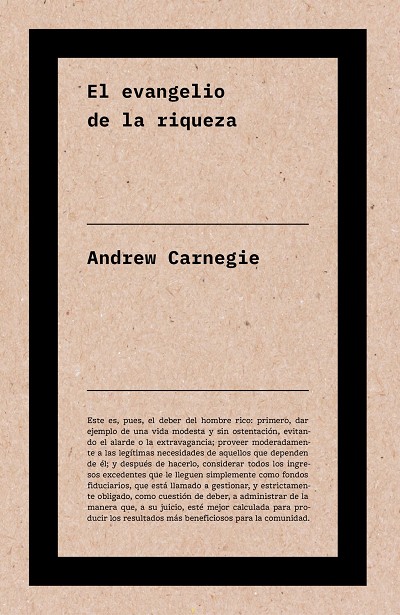 El evangelio de la riqueza, cuyo título original era Riqueza, se publicó en la revista North American Review en 1889 y fue considerado uno de los documentos fundacionales del campo de la filantropía. Andrew Carnegie, observando a los herederos de grandes fortunas y creyendo en la responsabilidad de la nueva clase alta de ricos hechos a sí mismos, propone una nueva forma de abordar la desigualdad. Sostiene que la riqueza excedente se aprovecha mejor y produce un mayor beneficio neto para la sociedad cuando los ricos la administran de manera responsable y reflexiva, evitando un uso derrochador e irresponsable. Este ensayo sigue resonando e inspirando a líderes y filántropos de todo el mundo.