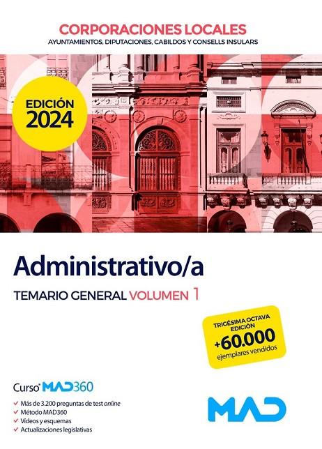 Primer volumen de nuestro Temario General para la adecuada preparación de las oposiciones de acceso a la categoría de Administrativo/a en las distintas Corporaciones Locales.