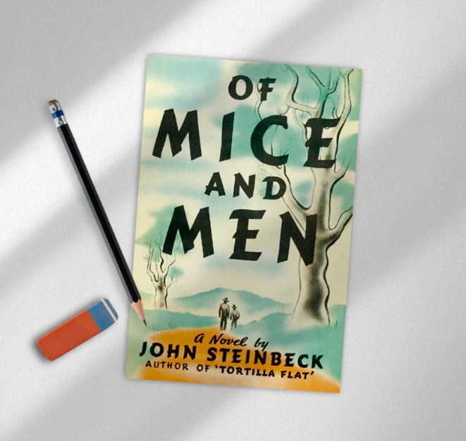 Libreta First Editions Of Mice and Men, con la portada original de la novela en su primera edición. Formato 14 x 21 cm 48 páginas de papel Natural de 120 g Cubierta plastificada mate. Bolsita transparente unitaria