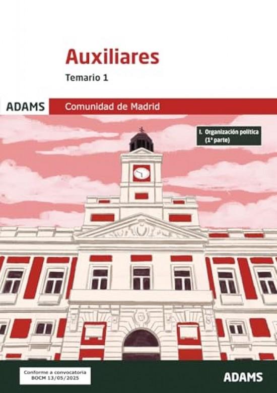 ADAMS publica la nueva edición, totalmente actualizada, del Temario 1, válido para la preparación del acceso al Cuerpo de Auxiliares, de Administración General, grupo C, subgrupo C2, de la Comunidad de Madrid. En él se desarrollan los temas 1 a 9 del bloque de Organización política, conforme al programa oficial exigido en la convocatoria publicada mediante Orden 1081/2025, de 24 de abril (BOCM de 13 de mayo de 2025). La colección se completa con los Temarios 2 y 3 y los volúmenes de Cuestionarios y Psicotécnicos. Su contenido, riguroso y didáctico, tiene en cuenta toda la normativa más reciente e incluye múltiples esquemas, referencias legislativas, recursos tipográficos e ideas clave. Todo ello te permitirá obtener una adecuada preparación de la oposición, de forma amena, comprensible y rápida.