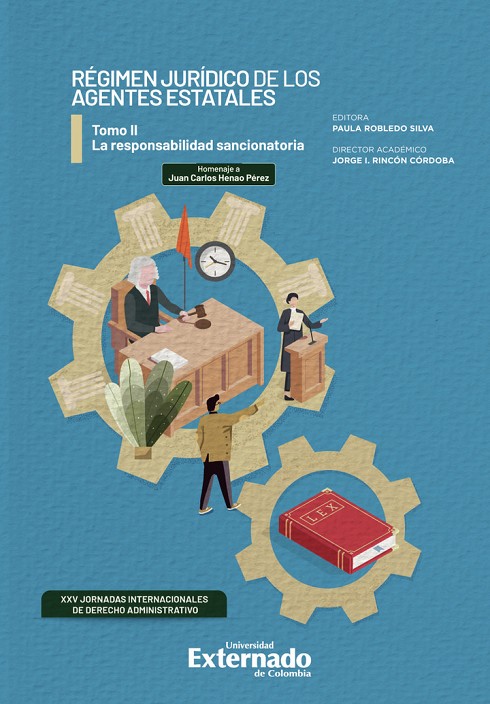 Luego de veinticinco años de ofrecer a la comunidad jurídica obras colectivas de investigación monográfica, que han marcado, año tras año, la doctrina administrativista, la escuela de Derecho Administrativo de la Universidad Externado de Colombia presenta la obra Régimen jurídico de los agentes esta- tales, en tres tomos. Es un estudio completo de los aspectos más importantes del derecho administrativo laboral y de las distintas responsabilidades en las que pueden incurrir los agentes del Estado: sancionatoria y patrimonial. En el tomo II se aborda la responsabilidad sancionatoria. Estudia, por un lado, el régimen disciplinario como componente del derecho administrativo y analiza, desde diferentes perspectivas, la naturaleza y los elementos de esta manifestación del poder sancionador del Estado. Asimismo, discusiones novedosas y actuales, como la convencionalidad de las sanciones disciplinarias de esta rama del derecho, el régimen disciplinario de los servidores públicos de elección popular y la incidencia de los juicios de responsabilidad estatal en el derecho disciplinario. Por otra parte, este volumen analiza también diferentes formas en las que el derecho disciplinario se relaciona con otras manifestaciones del ius puniendi del Estado, como lo son el derecho penal, la responsabilidad fiscal, la pérdida de investidura y la potestad de dirección y gestión de personal, entre otros. Se trata de una obra profunda, novedosa y actual, que pone de presente la importancia de comprender el verdadero alcance del derecho disciplinario y sus intersecciones con otros regímenes de responsabilidad.
