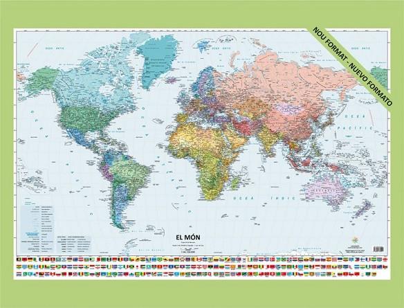 El Món (petit)-Nou format del mapa d’El Món amb la informació de 196 països: capitals, ciutats importants…així com els principals accidents físics: oceans, mars, rius, serralades, deserts…Amb les banderes oficials dels països.