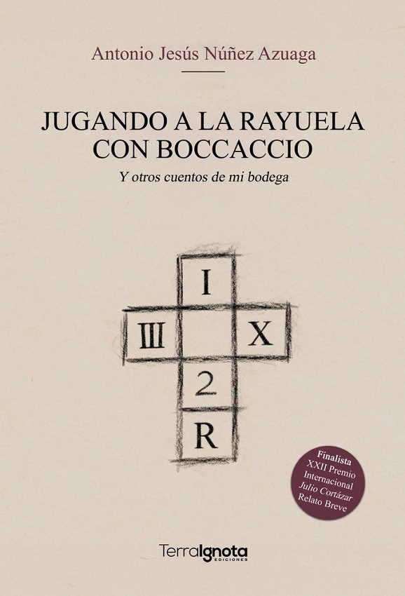 Jugando a la Rayuela con Bocaccio reúne diez relatos ambientados en un hotel durante una epidemia. Mientras los huéspedes permanecen confinados, un camarero transcribe sus historias y describe las relaciones entre empleados y clientes a lo largo de sus fatigosos días. El volumen se estructura mediante interludios -las Jornadas-, narraciones de autoficción que actúan como nexo entre los cuentos. En ellos, el camarero rememora su vida en la Costa del Sol, donde atendió a figuras como B. B. King, Fernando Lázaro Carreter o Jaime de Mora y Aragón. Los relatos exploran la intrahistoria de personajes ficticios ligados a hechos reales: una superviviente del Holocausto en Lo que guardan los objetos, un limpiabotas neoyorquino tras el asesinato de Martin Luther King en Reflejos en el río o un combatiente republicano que recuerda su paso por la Segunda Guerra Mundial en Unos labios solos. Entre ellos destaca La esclavina ensangrentada, finalista del Premio Internacional de Relato Breve Julio Cortázar. Una obra que transita entre el escepticismo y el entusiasmo de vivir, abordando la existencia en los pliegues de la experiencia humana.
