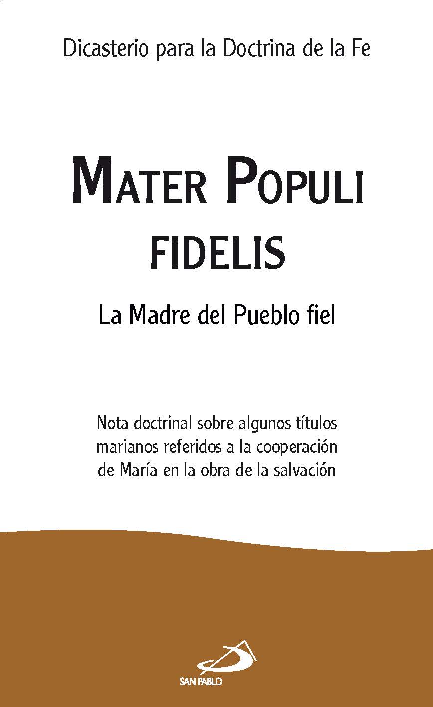 Mater Populi Fidelis (Madre del Pueblo Fiel) es el título de la Nota doctrinal del Dicasterio para la Doctrina de la Fe que clarifica el uso de algunos títulos marianos relativos a la maternidad de María respecto a los creyentes. Considera la devoción mariana como untesoro de la Iglesia expresada en...
