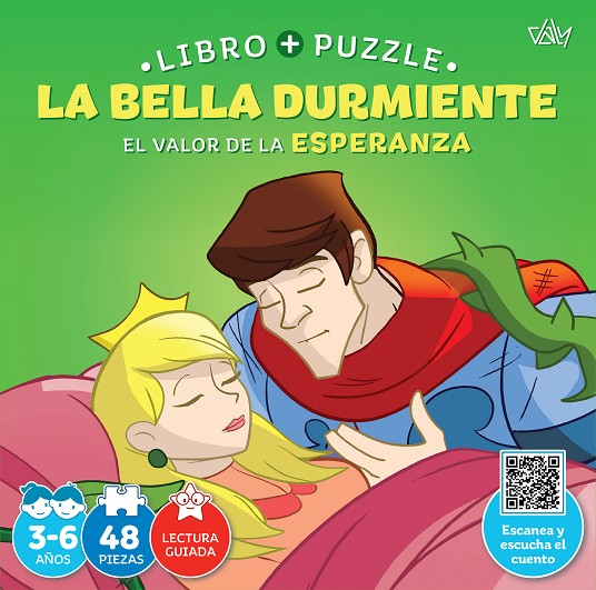 Leer cuentos a nuestros hijos es la mejor manera de estimular el amor por la lectura y de fortalecer los vínculos familiares. La colección Libro + Puzzle nos ofrece la oportunidad de enseñar valores a los niños para que se desarrollen como personas y aprendan a convivir y relacionarse con los demás.Revive las historias favoritas de nuestra infancia contadas de una manera moderna y divertida.Di sfruta con las fantásticas ilustraciones y descubre las historias de siempre como nunca antes las has visto.Descubre la importancia de la esperanza mientras acompañas a la Bella Durmiente y reflexiona con preguntas que te harán pensar.Diviértete montando el puzzle de 48 piezas.Escanea el código QR para escuchar las historias mientras juegas.